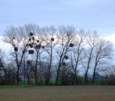 Mistletoe is typical of temperate regions, with cold winters and fairly regular rainfall. It grows naturally across Europe and parts of Asia and tolerates frost and even severe cold. It is hemiparasitic, obtaining water and minerals from the host tree, so climatic balance and water availability influence both the host and the mistletoe.