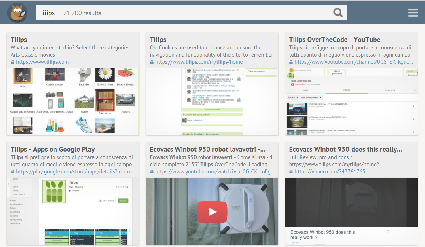 Results that surprise and allows you to choose the best search engine depending on the type of search.