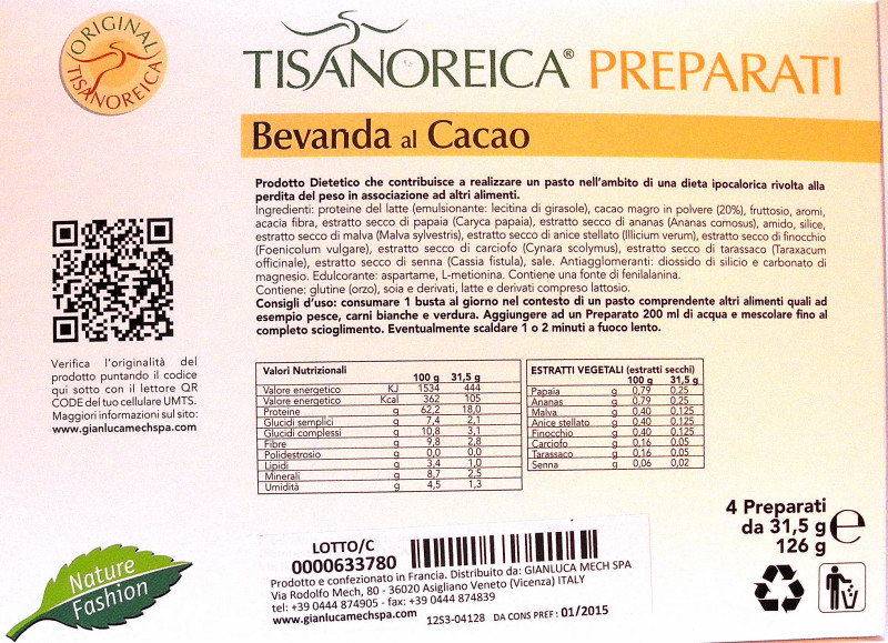 Prodotto Dietetico che contribuisce a realizzare un pasto nell'ambito di una dieta ipocalorica rivolta alla perdita di peso in associazione ad altri alimenti.
