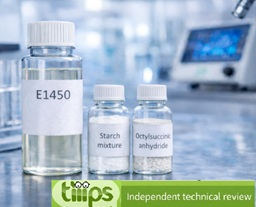 Sodium octenylsuccinate starch is a chemically modified natural starch produced by esterification of food starch (rice, maize) with octenylsuccinic anhydride using sodium carbonate or sodium hydroxide as pH buffer.