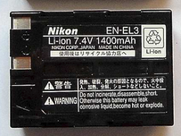 Batteria Nikon EN-EL3 di colore nero per fotocamere reflex Nikon.