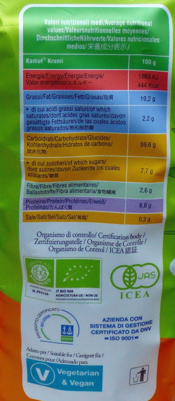 Dall'etichetta: Biscotti senza uova, senza latte e derivati, senza olio di palma, dolcificanti solo con sciroppo d'agave. Friabili gustosi e nutrienti ottenuti solo con ingredienti vegetali.