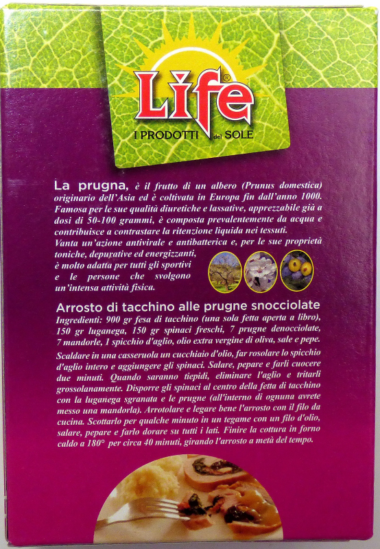 Dall'etichetta : Prugne snocciolate selezionate da Life di ottimo sapore delicato. ...