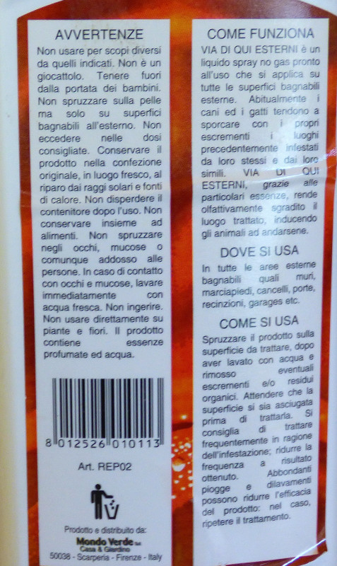 Dall'etichetta : Disabituante spray no-gas per cani e gatti ...