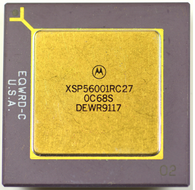 The Motorola XSP56001RC27 is a general-purpose DSP (digital signal processor) from the 56K family, based on the DSP56001 core, designed for real-time numerical and signal processing (digital filters, repeated MAC operations, FFT, control, audio, and communications). Compared to a contemporary general-purpose CPU, the goal is to maximize efficiency and determinism on data streams and repetitive loops.