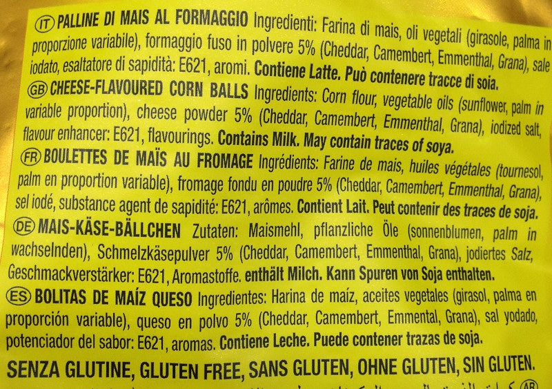 Dall'etichetta. Original. Leggero! Cotto al forno Ingredienti, percentuali in etichetta : Formaggio fuso in polvere 5% ...