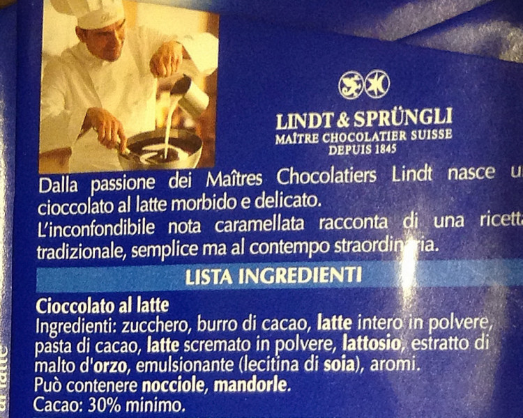 Dall'etichetta. Ricetta originale. Cacao 30% minimo ...