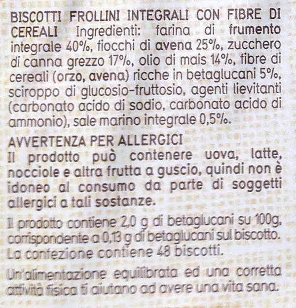 - fibre di cereali (orzo,avena) ricche di betaglucani 5%