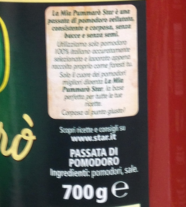 Dall'etichetta. 100% pomodoro italiano Lavorato appena raccolto da filiera controllata ...