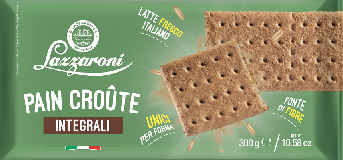 Prodotto da forno tipo “biscotto/pain croute” con una base di farina di frumento, arricchito con cruschello di frumento (13%) e fiocchi di avena (6,6%). L’impostazione “integrale” è presente soprattutto tramite crusca/cruschello e avena, ma la ricetta resta centrata su farina raffinata + zuccheri + grassi.