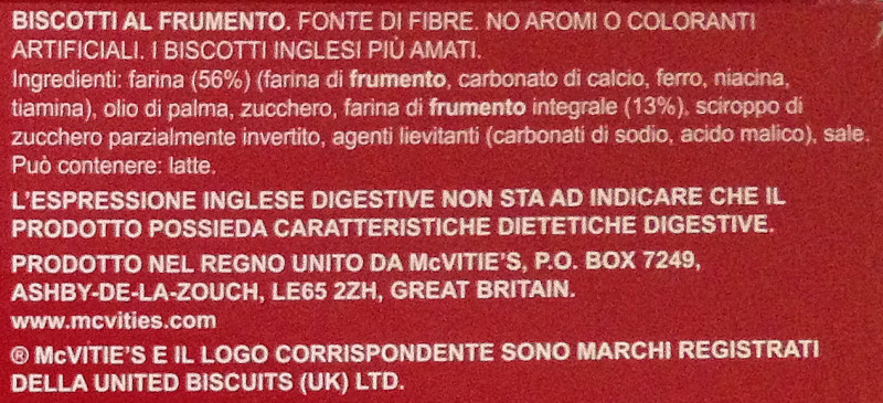 - L'espressione inglese Digestive non sta ad indicare che il prodotto possieda caratteristiche dietetiche digestive.