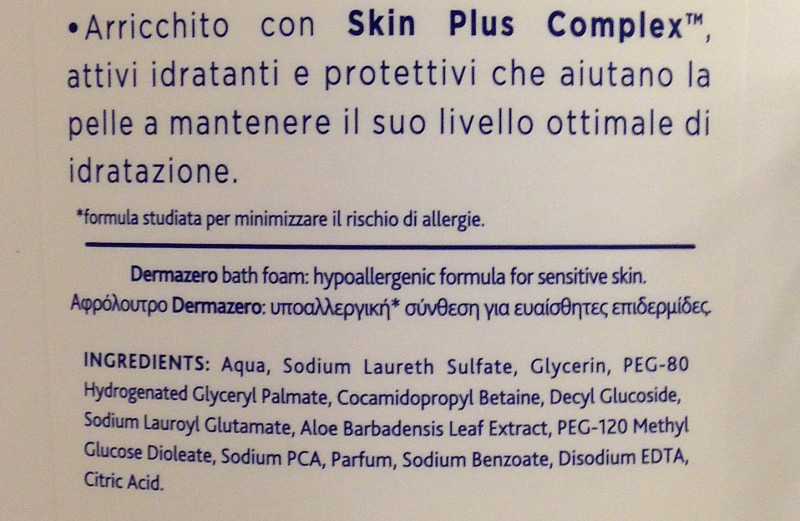 Dall'etichetta : 0% parabeni 0% coloranti 0% alcool bagnodoccia ipoallergenico ...