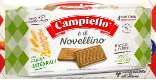 Novellini “integrali veri” (per la categoria) grazie a più cereali integrali e alla presenza di inulina: il risultato è un profilo con fibre alte (7,5 g) e saturi molto bassi (1,5 g), che è un’accoppiata rara tra i biscotti da colazione.