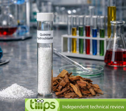 Dal punto di vista di sicurezza d’uso, per il chinino cloridrato (come sostanza) è rilevante che molte SDS lo classificano come nocivo se ingerito e potenzialmente sensibilizzante (cute e/o vie respiratorie): ciò rende particolarmente importante evitare esposizioni non necessarie in produzione (polveri), applicare misure di contenimento e definire con rigore la valutazione del prodotto finito.