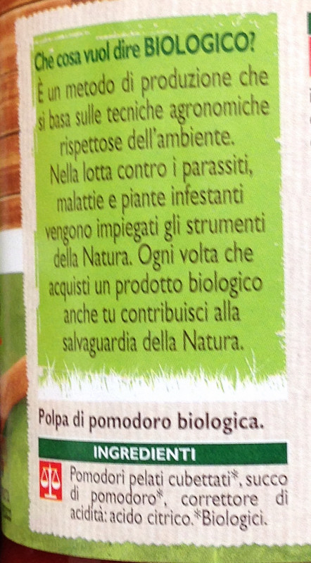 Dall'etichetta : da agricoltura biologica lavorata dal fresco ...