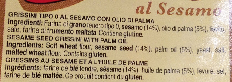 Dall'etichetta : al sesamo Ingredienti, percentuali in etichetta : sesamo 14% olio di palma 5% ...