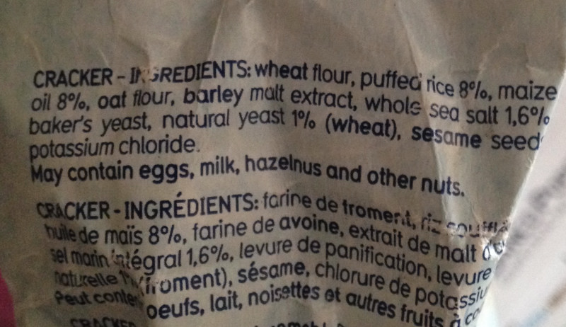 Dall'etichetta : senza olio di palma Ingredienti, percentuali in etichetta : riso soffiato 8% olio di mais 8% sale marino integrale 1,6% lievito madre naturale 1% ...