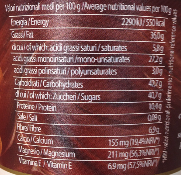 Vediamo la tabella nutrizionale: