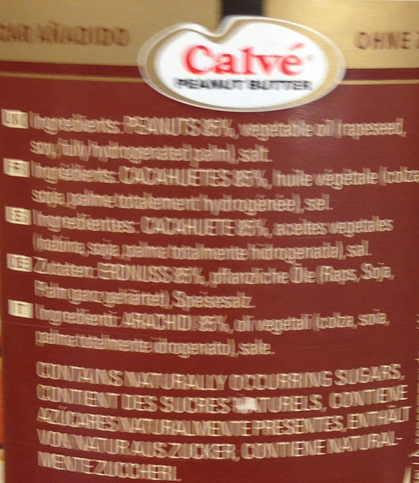 Ingredienti, percentuali in etichetta : ARACHIDI 85% ...