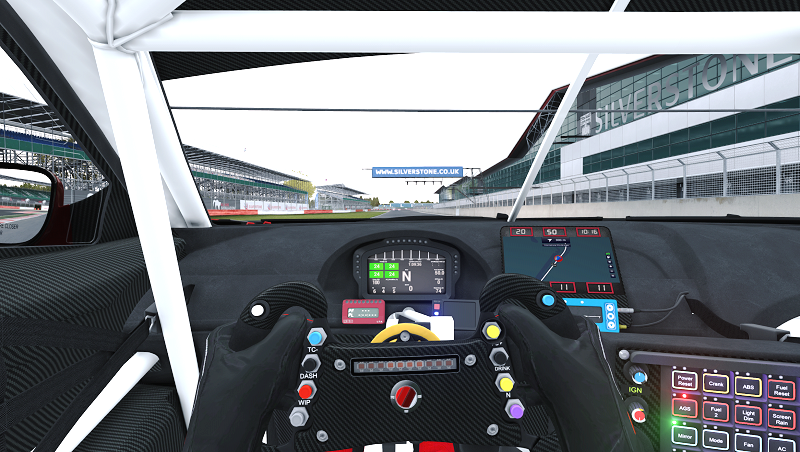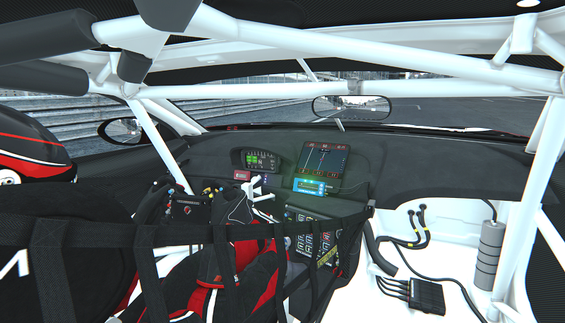Anche qui occorre regolare al meglio il FOV, ma fino a quando non inventeranno una vista panoramica che si allarga e si restringe contemporaneamente sia davanti che di lato, la visuale sarà un po' finta. Però, come dicevo prima, la parte esterna è eccellente ed è la parte che poi vedremo nei replay, quindi la più importante. Anche questa auto non fa eccezione, a mio avviso. Eppure l'interno è disegnato bene. Ma non mi piace, come non mi piace nelle altre auto: sembra un disegno e non una riproduzione in 3D della realtà. Solo i guanti sono accettabili.