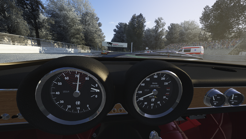 Un'auto che si guida ancor oggi con grande piacere, scattante. E' stato fatto un ottimo lavoro sugli ammortizzatori. Le marce hanno una progressione molto realistica e soprattutto il fuori giri da 5.900 giri a 8.000 giri è un piacere da sentire. All'epoca la strumentazione era piuttosto scarsa e quindi troviamo il contachilometri, un indicatore della pressione dell'olio con la lancetta che segue i giri del motore, le accelerazioni e le decelerazioni, l'indicatore della benzina e quello della temperatura acqua.
