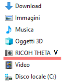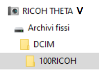 Le foto si vedono a 360° se si apre File e se si seleziona la cartella di THETA dove sono contenute le foto. Click su RICOH THETA V
