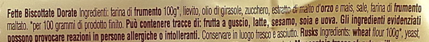 Ottime fette biscottate. Croccantezza, profumo ottimi anch'essi. Sale un po' alto..
