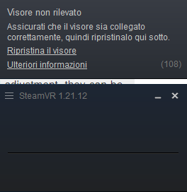In particolare SteamVR avverte se il visore non è collegato e lo può ripristinare (se è collegato correttamente).