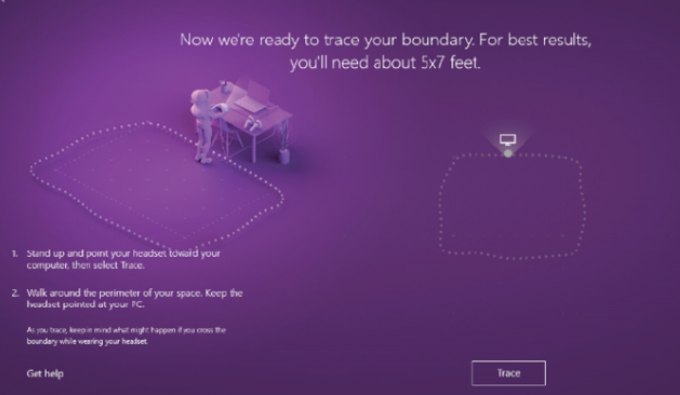 Poi occorre fissare i limiti della stanza (in modo che, col visore indossato, non si vada a sbattere contro qualche ostacolo). Con il visore puntato verso il computer descrivere un cerchio o un rettangolo entro il quale muoversi col visore indossato,