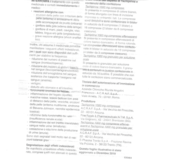 Qui informazioni su Tachipirina® 1000 mg compresse
