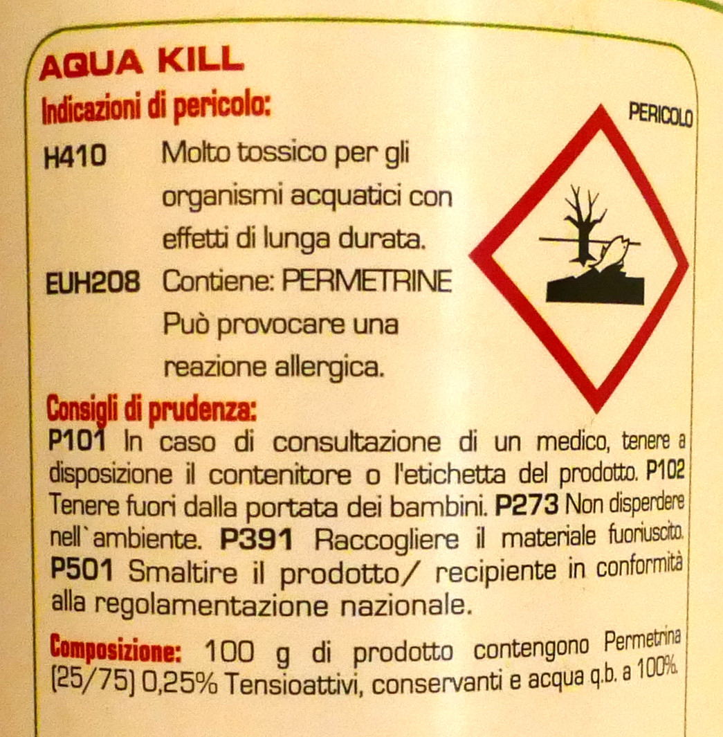 Permetrina è un composto chimico, un insetticida che appartiene alla famiglia dei piretroidi e funziona come neurotossina, cioè influisce sul neurotrasmettitore dell'insetto bloccandone l'attività. La permetrina è una sostanza approvata anche in Svizzera per: conservazione del legno da tarli, controllo degli insetti, controllo delle formiche ecc. Dal punto di vista della sicurezza, è tra gli insetticidi meno dannosi, ma comunque è bene fare attenzione e seguire le avvertenze riportate sull'etichetta.