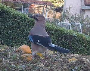 La ghiandaia (Garrulus glandarius) è un uccello passeriforme di medie dimensioni appartenente alla famiglia dei Corvidi. È facilmente riconoscibile per il suo piumaggio variegato: corpo rosato-bruno, ali nere con barre bianche e caratteristici specchi alari blu elettrico barrati di nero. Ha un becco robusto, occhi chiari e un volo ondulato. Intelligente e cauta, la ghiandaia è nota per la sua voce forte e sgraziata, ma anche per la sua capacità di imitare i richiami di altri uccelli e persino suoni umani.