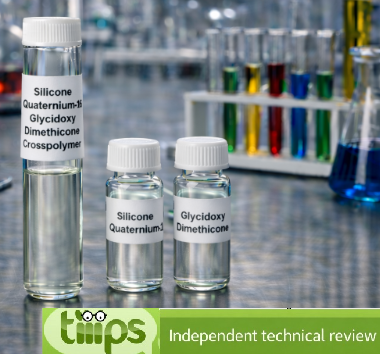From a structural standpoint, it is a three-dimensional polymer network incorporating Silicone Quaternium-16 and Glycidoxy Dimethicone, which provides film-forming performance, conditioning benefits, and improved wash resistance.
