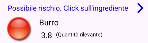 Importante: Quando l'app rileva un componente molto calorico o pericoloso ne segnala la quantità con le scritte "Quantità rilevante" o "Quantità minima", consentendo all'utente di decidere autonomamente.