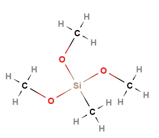 Composizione. Il Metiltrimetossisilano è un silano con tre gruppi metossi legati a un atomo di silicio, che possono idrolizzarsi formando strutture silossaniche reticolate.