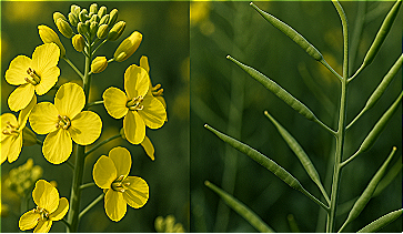 Caratteristiche generali: pianta annuale/biannuale coltivata per i semi oleosi a basso contenuto di glucosinolati ed acido erucico; crescita rapida, infiorescenze a racemo con fiori gialli, semi contenenti olio e proteine
