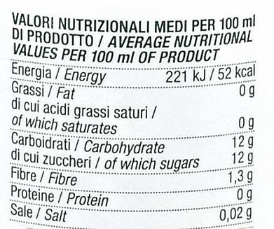 La tabella nutrizionale riflette le caratteristiche del frutto: