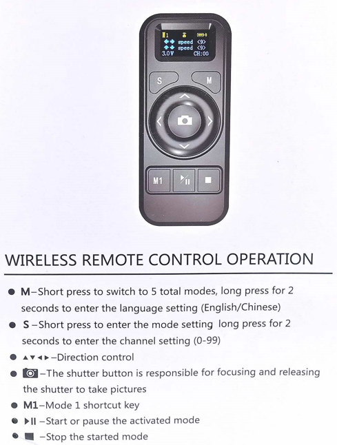 Il telecomando trasmette a 2,4 GHz fino 100 metri (dichiarati dal costruttore), ha 99 canali,