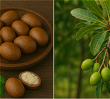 La Vitellaria paradoxa è un albero sempreverde o semideciduo appartenente alla famiglia botanica delle Sapotaceae, originario delle savane dell’Africa subsahariana, in particolare della cosiddetta “fascia del karité”. È una pianta di crescita lenta che può raggiungere anche 10–15 metri di altezza, con chioma ampia e densa, foglie coriacee e fiori bianco–crema. I frutti sono drupe ovoidali, di colore verde che vira al giallo/bruno a maturazione, contenenti uno o più semi oleosi: da questi si ottiene il noto burro di karité.