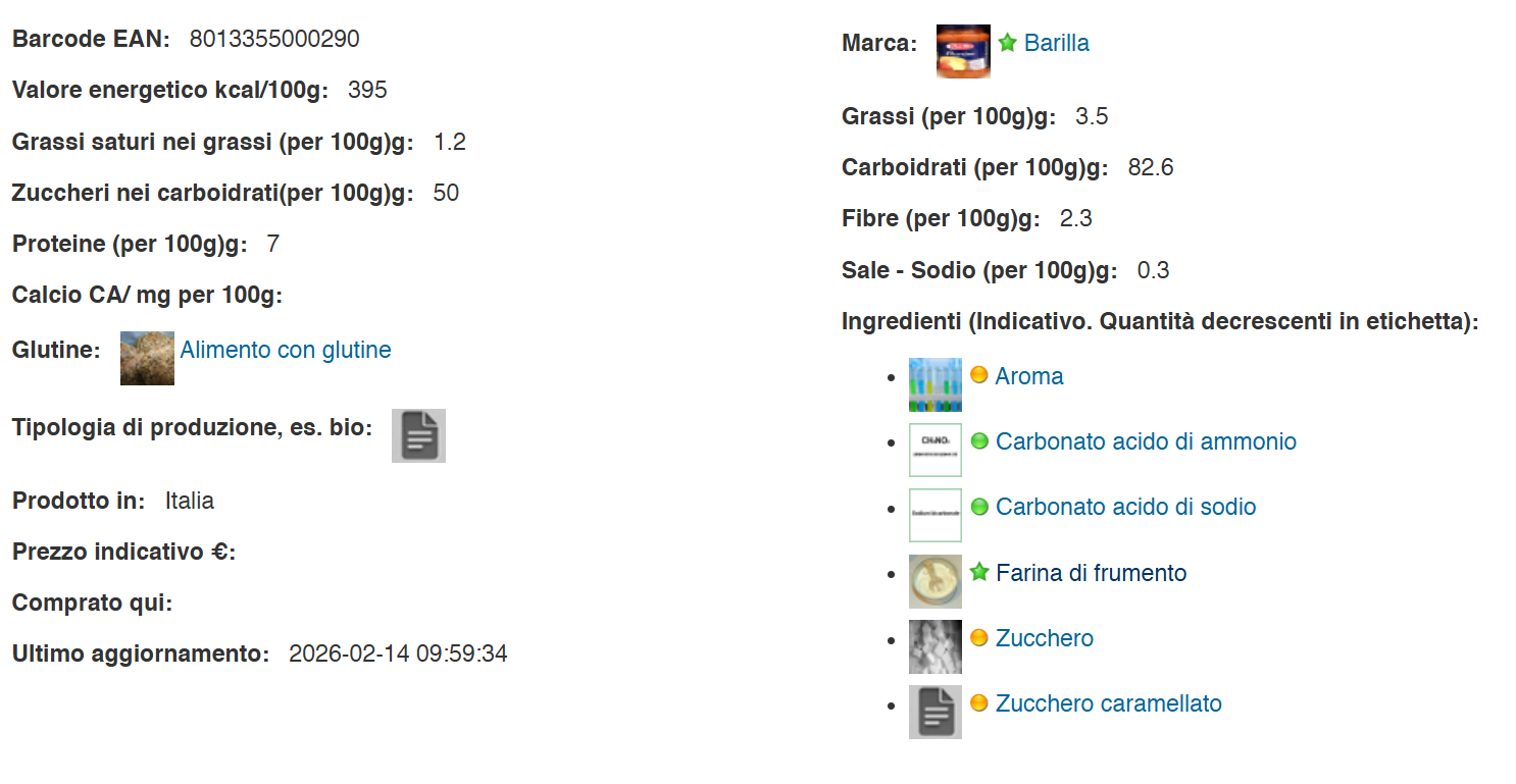 La lista ingredienti è infatti molto corta: farina di frumento, zucchero e zucchero caramellato, con aroma e i classici lievitanti carbonato acido di ammonio e carbonato acido di sodio.