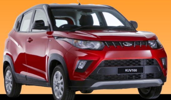 The KUV100 is a 3.69 m city-crossover with bold styling—sculpted bodywork, “shark-nose” grille, and LED DRLs. Rear door handles are hidden in the C-pillars for a sleek profile. The surprisingly roomy cabin features cloth seats, an 8″ touchscreen for radio and smartphone integration, durable plastics with textured accents, and multiple storage cubbies.