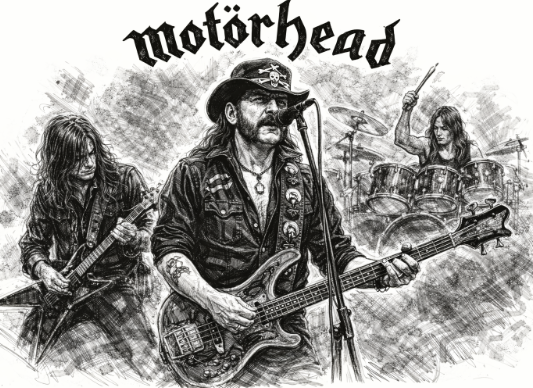 Motörhead were a British rock band formed in London in 1975 by Ian “Lemmy” Kilmister (bass and vocals). The band is generally associated with hard rock, heavy metal, and speed metal, with a sonic approach that merges punk urgency, metallic power, and rock ’n’ roll attitude. Over time, Motörhead became a cultural reference as well as a musical one: the idea of a “no-compromise” band built on volume, speed, directness, and live credibility.