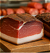 (coscia suina stagionata e leggermente affumicata — intero, trancio, affettato RTE)