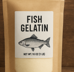 La gelatina di pesce è una proteina di origine animale ottenuta mediante idrolisi parziale del collagene estratto da pelli, lische e squame di pesce. È utilizzata come ingrediente funzionale nell’industria alimentare, nutraceutica, farmaceutica e cosmetica, come alternativa alla gelatina di origine bovina o suina, soprattutto in contesti religiosi, culturali o tecnologici specifici.