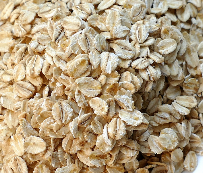 The term "oat flakes" refers to oat grains that have been crushed or rolled to achieve a flat shape.