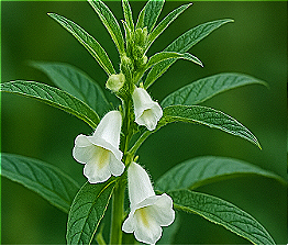 Sesame is an annual herbaceous species of the Pedaliaceae family, cultivated for millennia in regions with tropical, subtropical and warm temperate climates. The plant has an erect stem, simple or branched, with opposite or alternate leaves of variable shape (ovate, lanceolate or lobed) and inflorescences bearing tubular flowers, usually white or pinkish. The fruit is an elongated capsule, internally divided into compartments that contain the small seeds, which represent the main part of interest from a food and technological standpoint.