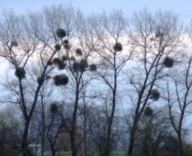 Mistletoe is typical of temperate regions, with cold winters and fairly regular rainfall. It grows naturally across Europe and parts of Asia and tolerates frost and even severe cold. It is hemiparasitic, obtaining water and minerals from the host tree, so climatic balance and water availability influence both the host and the mistletoe.