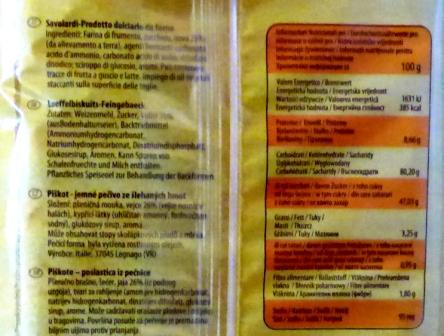 Barcode EAN:   8057829050015 Energy kcal/100g:   385 Satured Fat (per 100g)g:   0.95 Sugar into Carbohydrates (per 100g)g:   47.03 Proteines (per 100g)g:   8.66 Calcium CA/ mg (per 100g)g:   Gluten:   Production type:   Made in:   Italy Price €:   Bought here:   Last update:   2014-11-16 19:15:10 | Brand:   Fat (per 100g)g:   3.25 Carbohydrates (per 100g)g:   80.2 Fiber (per 100g)g:   1.8 Salt - Sodium (per 100g)g:   0.95 Ingredients (Indicative):   |