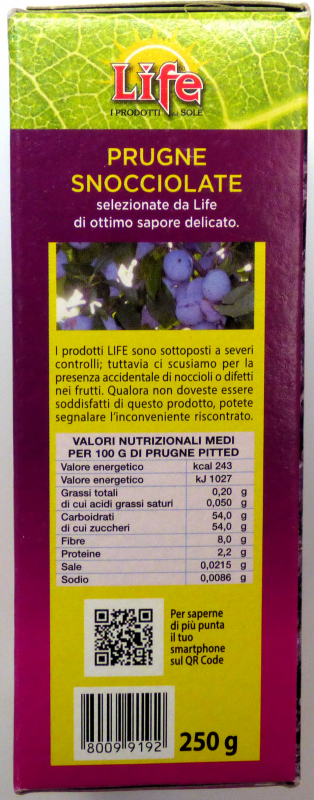 Barcode EAN:   80099192 Energy kcal/100g:   243 Satured Fat (per 100g)g:   0.05 Sugar into Carbohydrates (per 100g)g:   54 Proteines (per 100g)g:   2.2 Calcium CA/ mg (per 100g)g:   Gluten:   Production type:   Made in:   Bought here:   Last update:   2015-03-10 13:00:39 | Brand:   Fat (per 100g)g:   0.2 Carbohydrates (per 100g)g:   54 Fiber (per 100g)g:   8 Salt - Sodium (per 100g)g:   0.0301 Ingredients (Indicative):   Price €:   |