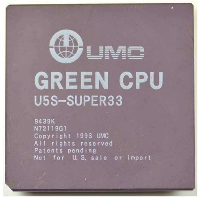 The UMC U5S-SUPER33 is a 486-class CPU introduced in 1993 by United Microelectronics Corporation (UMC). It is described as a “fast” 486 with reduced power consumption compared to contemporary Intel CPUs, therefore aimed at delivering a strong performance/thermal balance on standard 486 platforms.